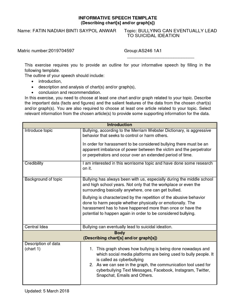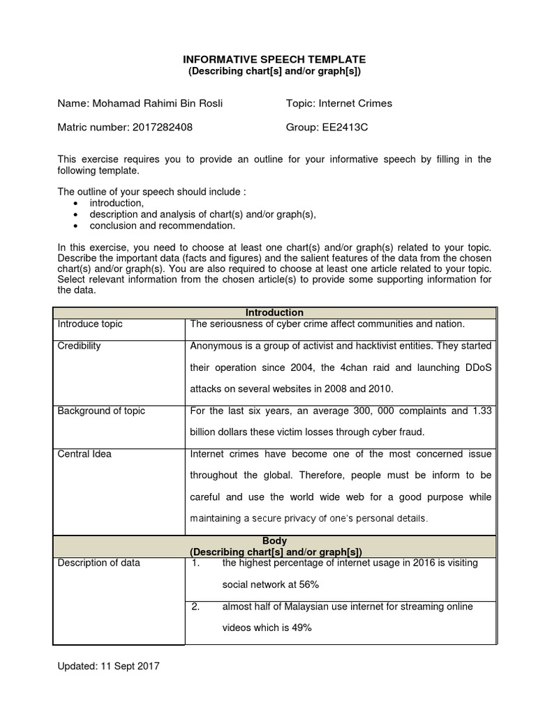 20192020 100 28 Save. INFORMATIVE SPEECH TEMPLATE Describing charts andor. Mohamad Rahimi Bin Rosli Topic.